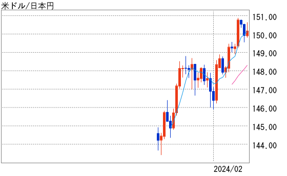 先週(2月12日-2月16日)のドル円相場は、ドル高円安が優勢となり、一時1ドル=150円89銭を付けた。その後は調整の動きも、149円台半ばではドル買いが出るなど、しっかりの展開。