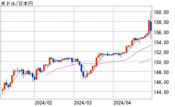 26日の海外市場で156円80銭台を付けた後、155円00銭割れまで急落する場面が見られるなど、介入を警戒して、大口のドル売りに神経質に反応する場面が見られたが、ドル高円安の勢いが止まらなかった。
