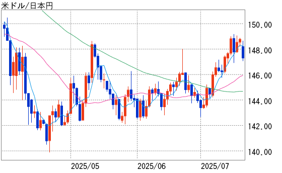 今週はそれほど大きな米指標発表がなく、先週土曜日から米FRB関係者が金融政策についての発言を制限されるブラックアウト期間(用語説明2)に入っているため、今週はやや材料不足の感がある。トランプ大統領が今月各国に示した関税の期限が8月1日に迫っており、大詰めを迎える各国の交渉の動向などをにらみながらの展開となりそう。
