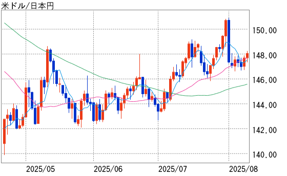 先週(8月4日-8月8日)のドル円は、1日の米雇用統計を受けて一気に進んだドル安の流れを意識する展開となった。米雇用統計前の1ドル=150円台後半から147円台へ下げて先々週の取引を終えると、週明けもう一段のドル安となり、5日東京朝に146円62銭を付けた。その後は行き過ぎた動きにも警戒感が出て下げ止まったものの、148円前後のドル売りが上値を抑える形となり、7日、8日にも146円台を付ける場面が見られるなど、ドル安警戒が継続した。