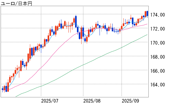 ドル主導でクロス円はやや不安定。ユーロ円は株高などを支えにしっかり。米FOMC後のドル円の安値からの反発もあり1ユーロ=174円50銭前後を付けている。
