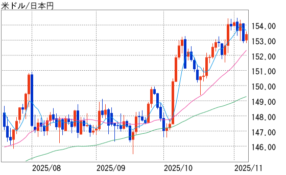 その後利益確定のドル売りなどに少し下げると、6日の米チャレンジャー企業人員削減数(用語説明1)が10月としては過去20年で最多となったことなどを嫌気し、152円80銭台までドル安となった。もっとも行き過ぎた動きには警戒感があり、7日の市場で153円50銭台を付けるなど、一方向の動きにはならなかった。