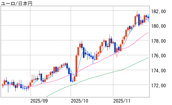 26日には通信社が「日銀がタカ派姿勢を復活させ12月利上げを意識」と報じたことをきっかけに円が買われ、1ドル=155円65銭を付けた。1ユーロ=180円90銭台から180円30銭台までユーロが下落するなど、円が全面高となる場面があった。しかし、ドルは対円ですぐに反発して156円台を回復。10月の豪消費者物価指数(用語説明2)が上振れしたことで豪ドル円が買われたことなどが円安のきっかけとなった。さらに日本政府の補正予算案で11兆円超の国債を発行する方針が報じられ、財政赤字への警戒から円安が進行した。米新規失業保険申請件数の好結果によるドル高もあって1ドル=156円74銭を付けている。1ユーロ=181円40銭台を付けるなど、クロス円もしっかりとなった。