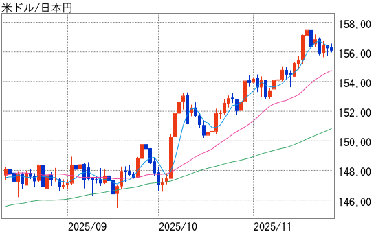 ただ、高市政権下での積極財政による財政赤字拡大への懸念などが円売りにつながっており、ドルは下がると買いが入る展開。短期的にはやや上値の重さが見られるものの、中期的な流れはまだ上方向との見方も根強い。