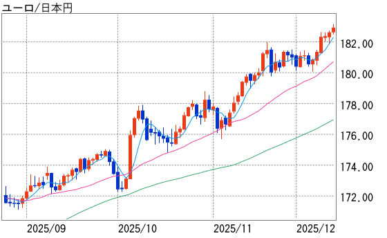 ユーロ円は週前半のドル円の上昇を支えとした上昇の後、182円60銭前後が重くなっていたものの、182円割れでは買いが出る展開を経て、週後半の対ドルでのユーロ買いもあって183円16銭を付けた。